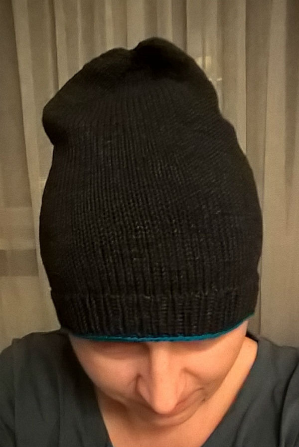 Schowaj jeszcze końcówkę z początku robótki, wybierz czapkę i zablokuj.